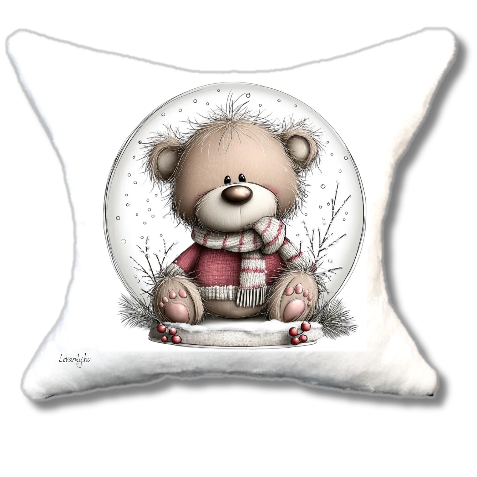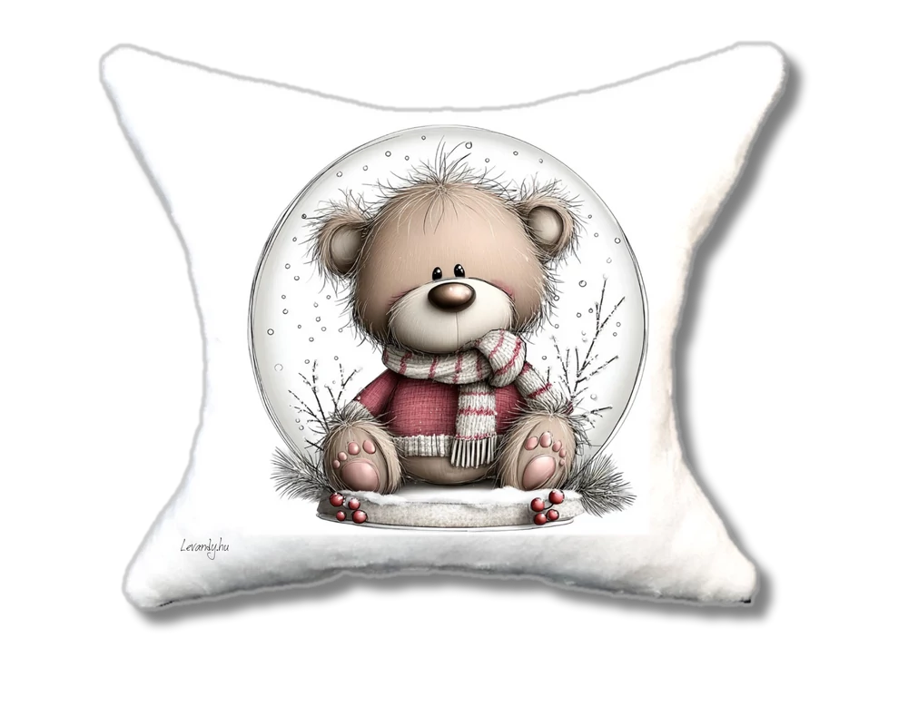 Cuki Plüsspárna macika hógömbben – Extra Puha, Egyedi Felirattal is kérheted. Mérete:32*34 |