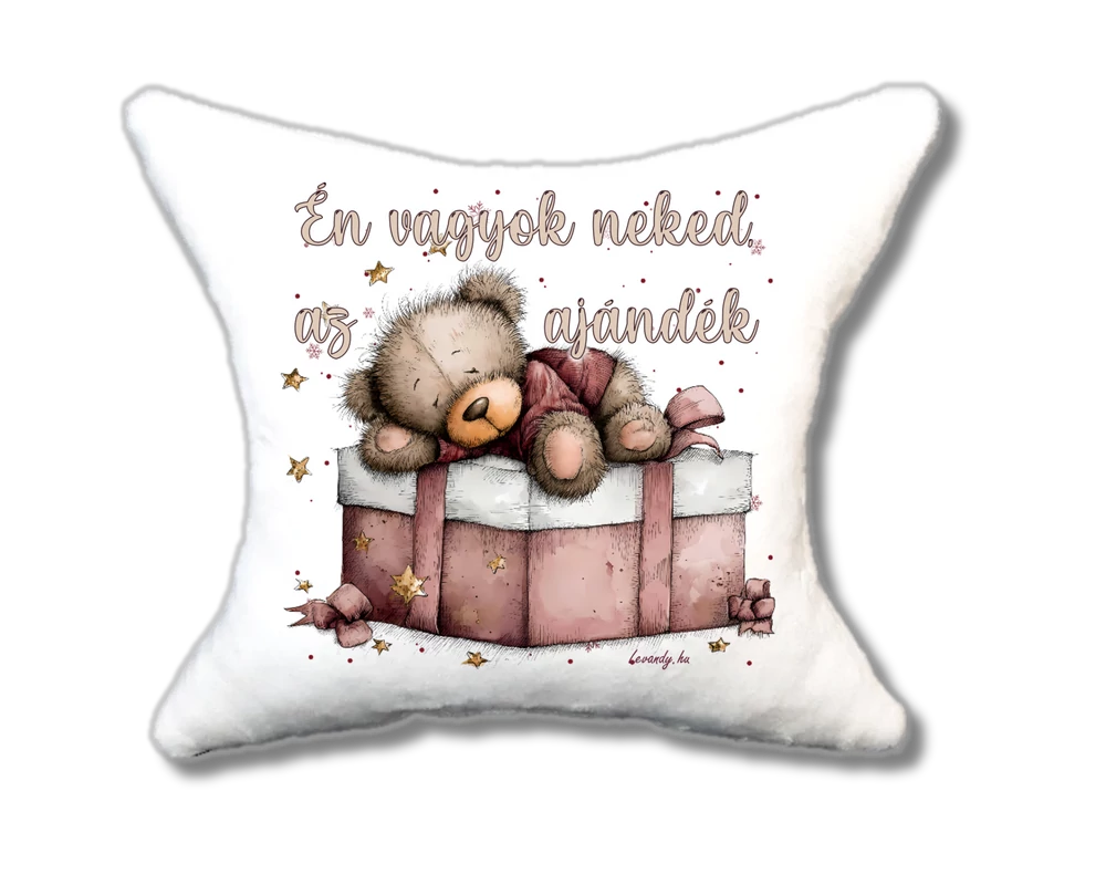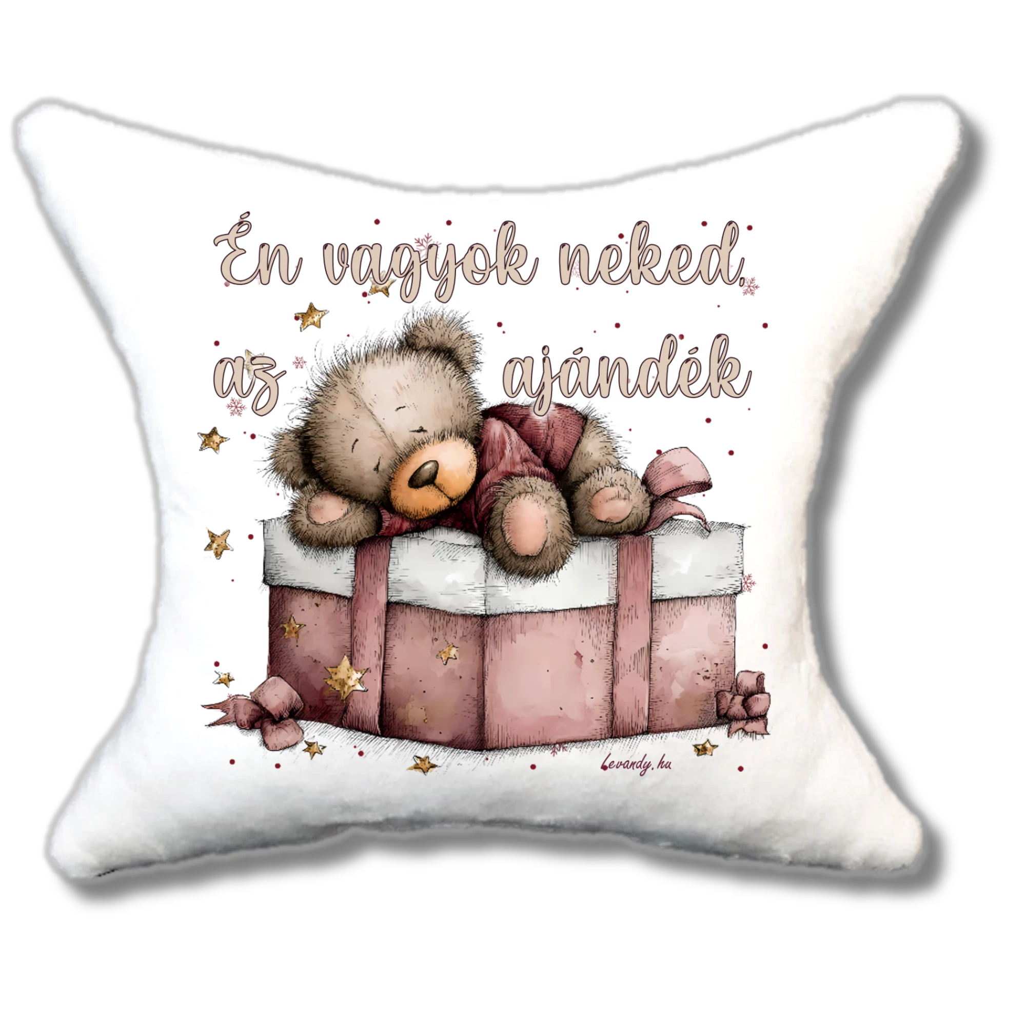 Cuki Plüsspárna macika karácsonyi ajándék – Extra Puha, Egyedi Felirattal is kérheted. Mérete:32*34 |