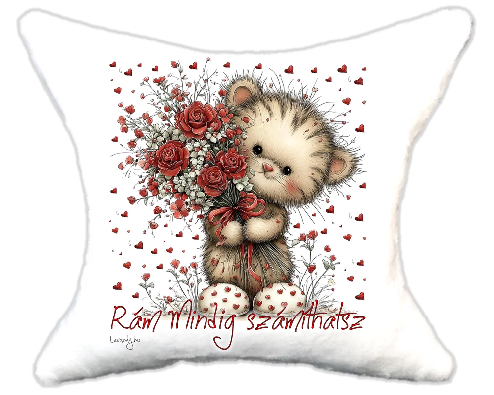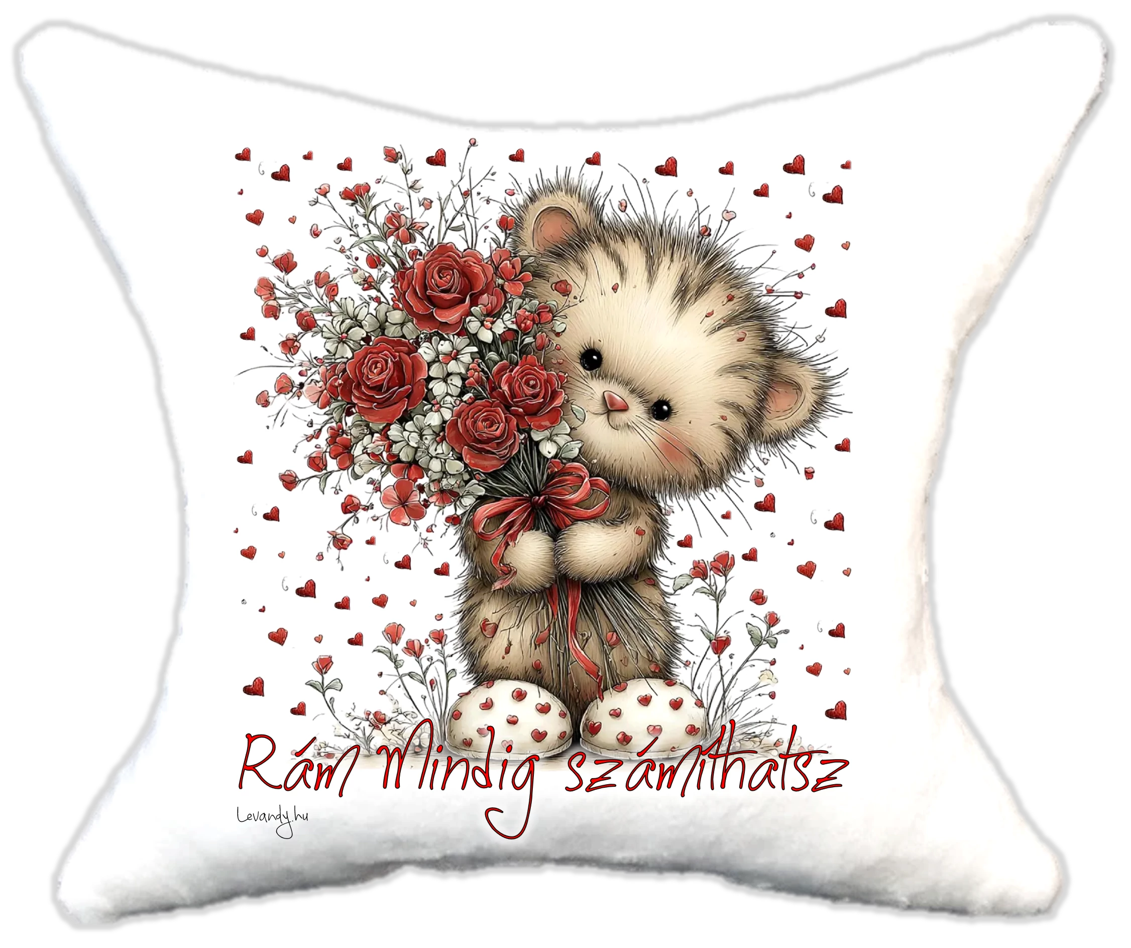 Cuki Szerelmes rózsás cicás Plüsspárna – Extra Puha, Egyedi Felirattal is kérheted. Mérete:32*34 |