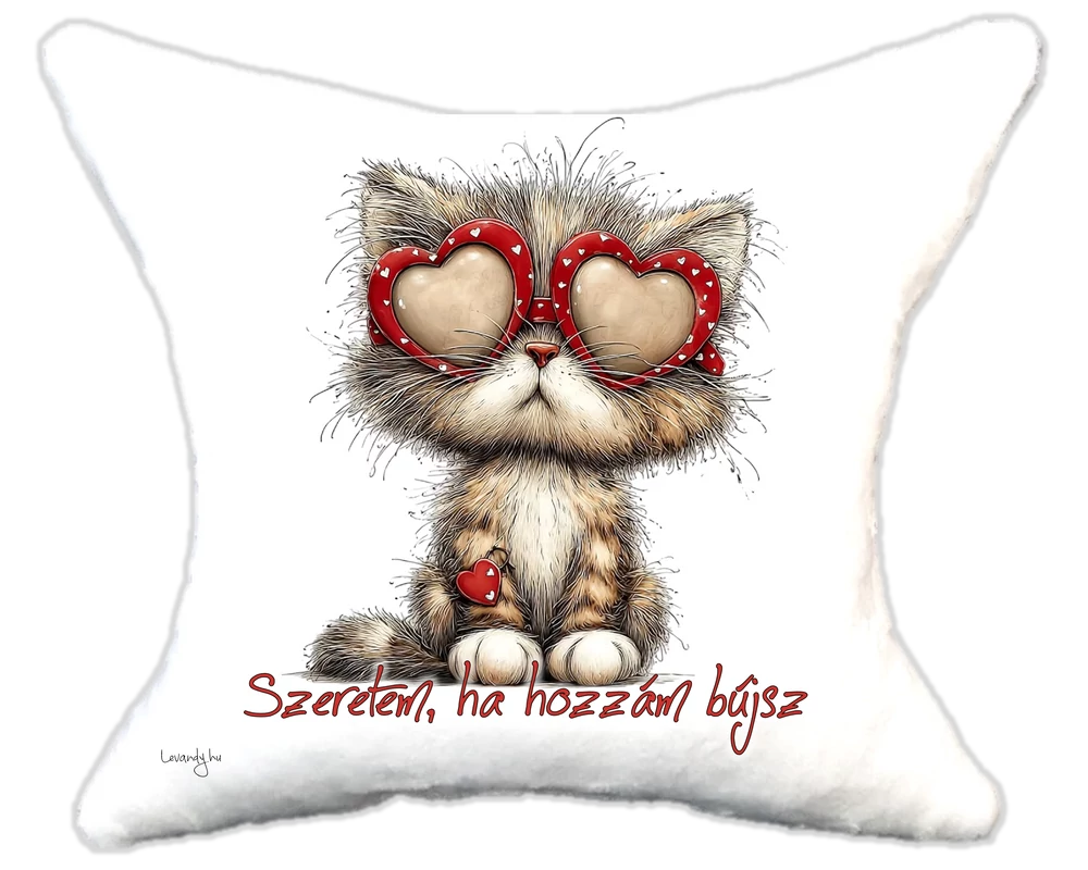 Cuki Szerelmes cicás szemüvegben Plüsspárna – Extra Puha, Egyedi Felirattal is kérheted. Mérete:32*34 |