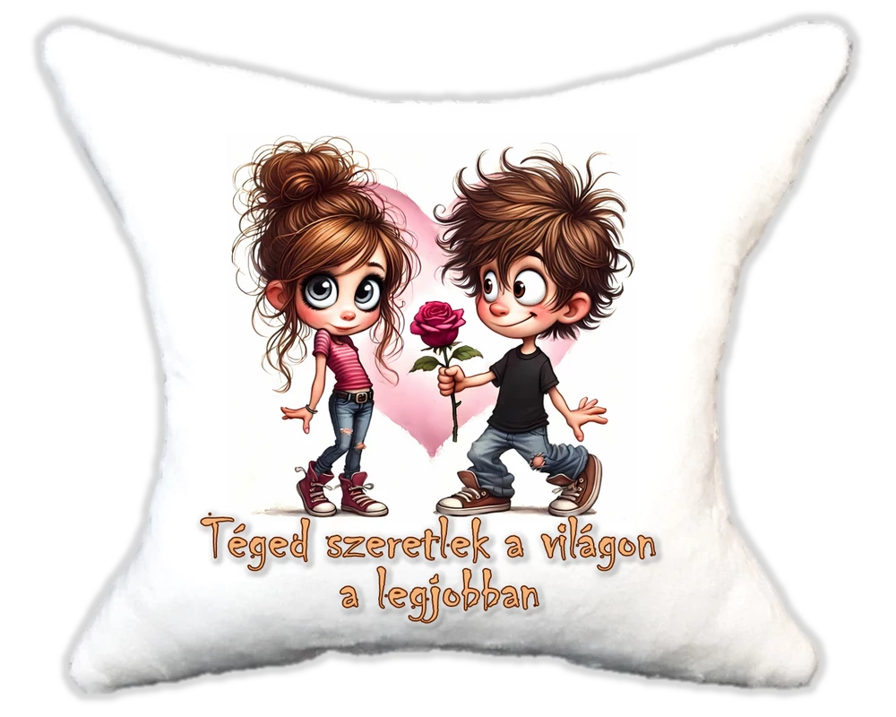 Cuki Szerelmes cuki pár rózsával Plüsspárna – Extra Puha, Egyedi Felirattal is kérheted. Mérete:32*34 |