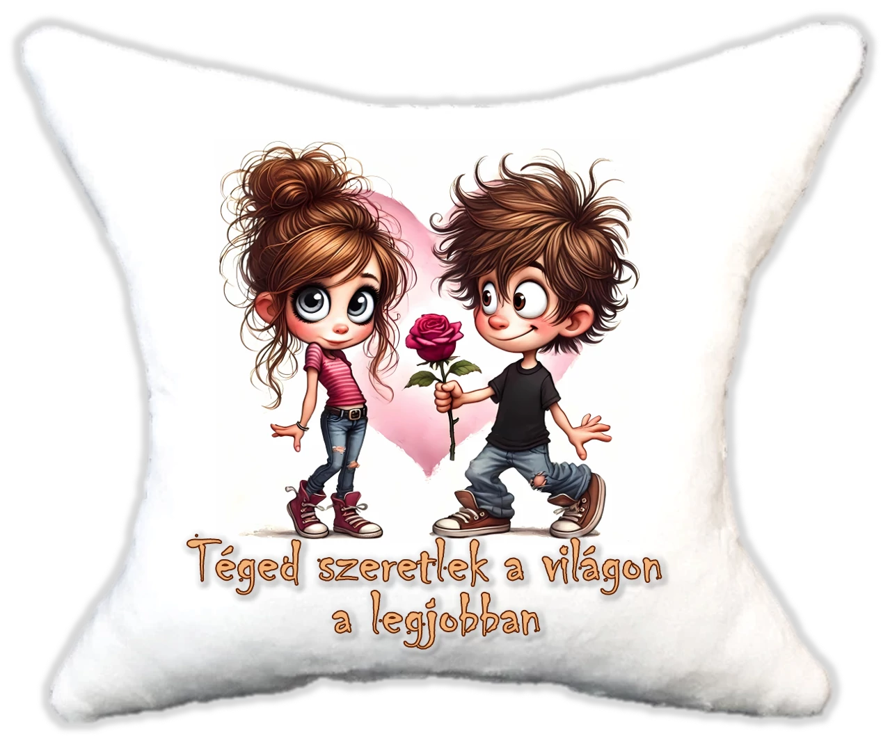 A párnát egyedi felirattal is kérheted: a legördülő menüből kiválaszthatod a neked tetsző szöveget, legyen az ünnepi üzenet, névre szóló köszöntés vagy vicces szerelmes felirat. Így a párna könnyen személyre szabható és tökéletes ajándék lehet születésnapra, karácsonyra, évfordulóra vagy csak úgy.