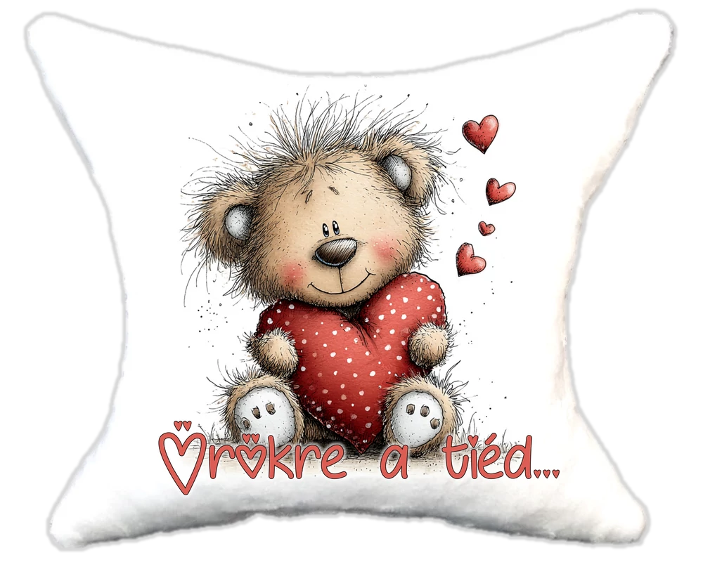 Cuki Szerelmes Macika szívvel Plüsspárna – Extra Puha, Egyedi Felirattal is kérheted. Mérete:32*34 |