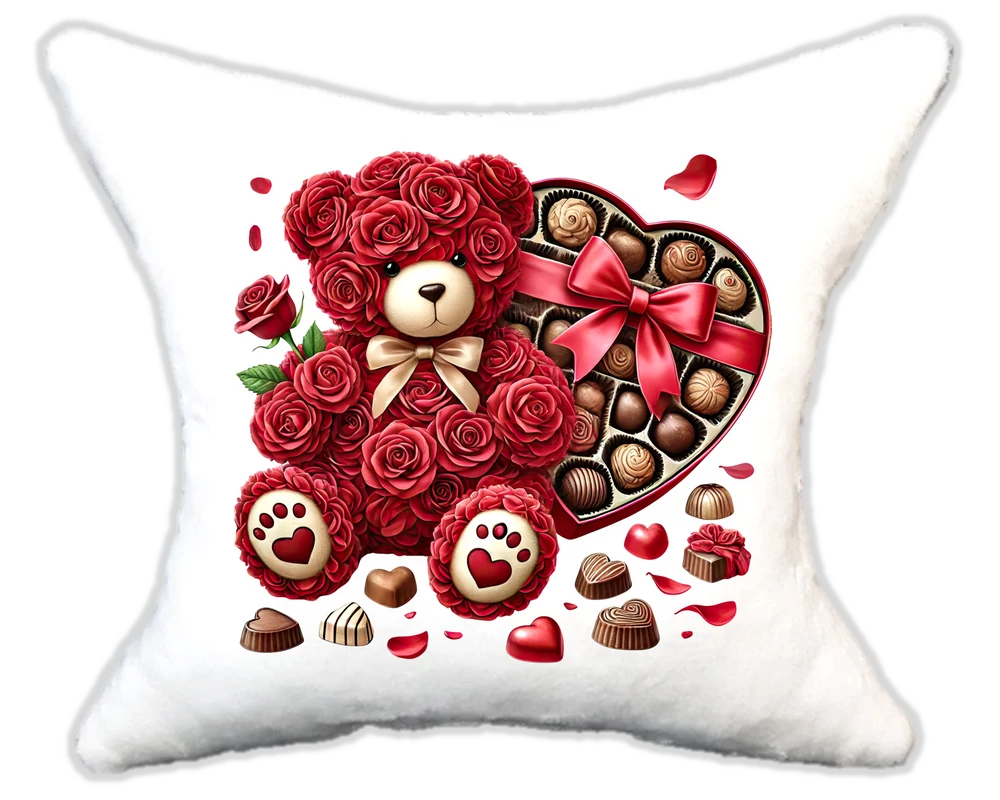 Cuki Szerelmes Rózsamaci csokibonbonokkal Plüsspárna – Extra Puha, Egyedi Felirattal is kérheted. Mérete:32*34 |